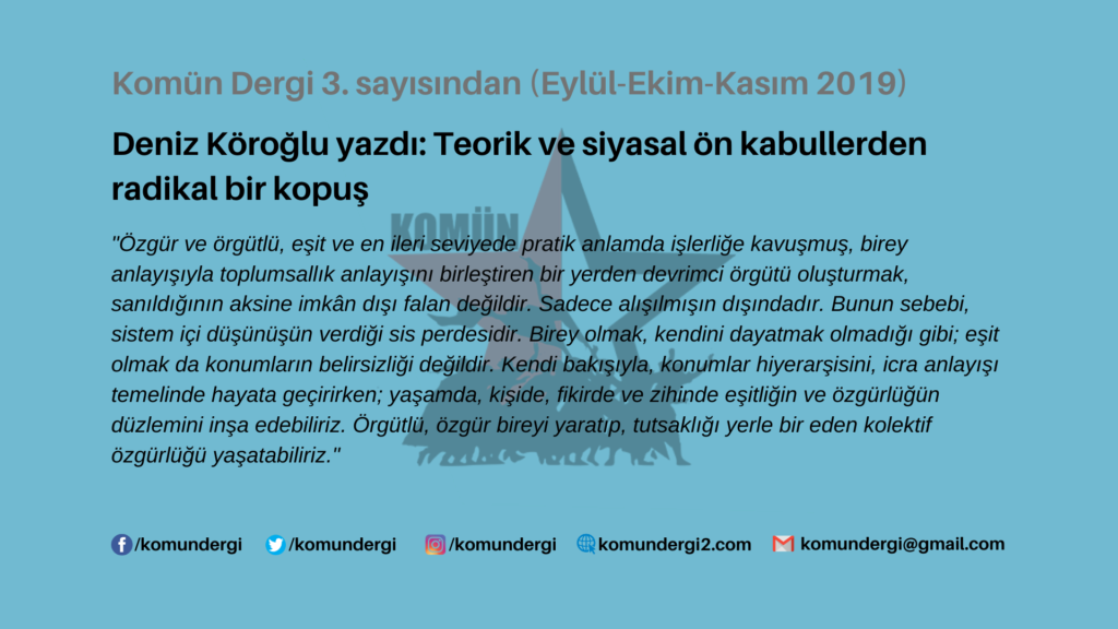 Teorik ve siyasal ön kabullerden radikal bir kopuş – Deniz Köroğlu
