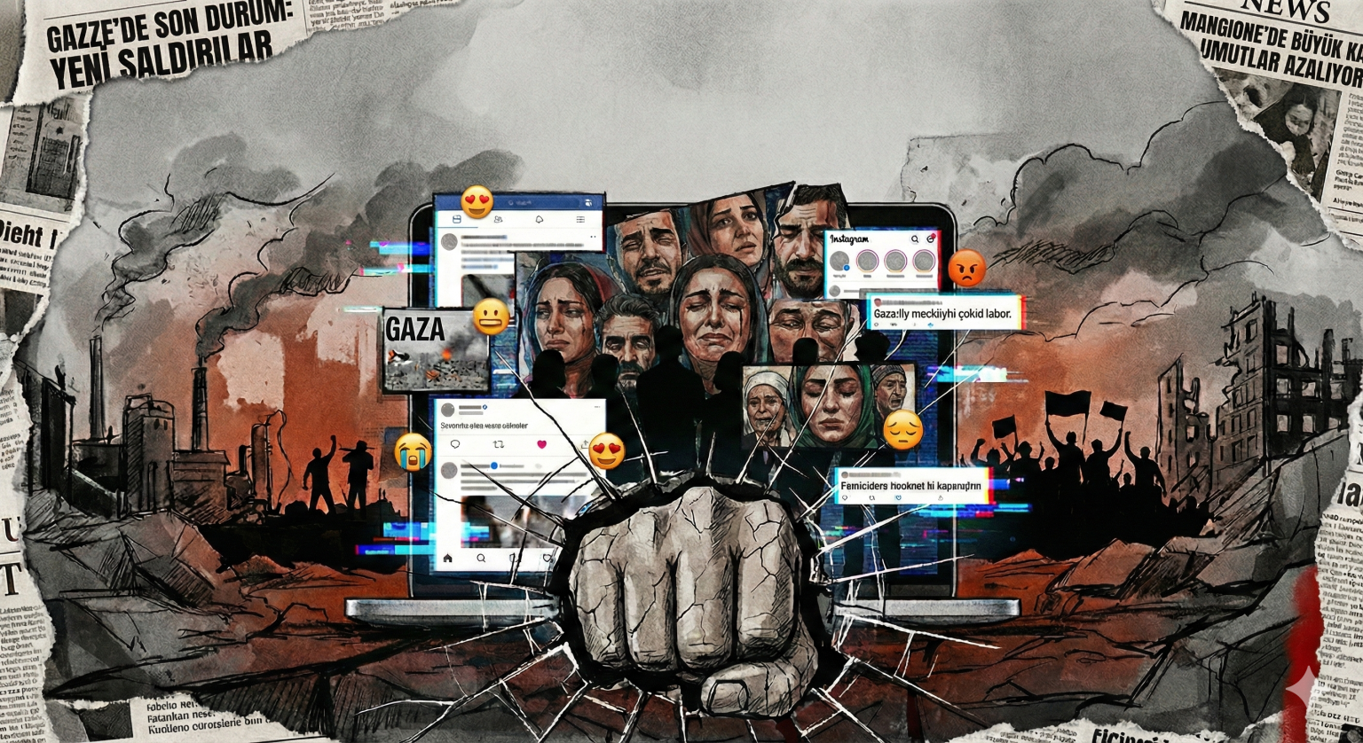Zamanında Baudrillard’ın Körfez Savaşı için yaptığı şu tespit Gazze Savaşı için 10 kat daha geçerlidir: TV izleyicilerinin Körfez savaşını bir medya olayı olarak rahat ve geniş koltuklarında cips yiyerek izlediğini belirtir. Savaşın yeri ve bölgesinin herhangi bir sınır içermediğini, füze bombardımanı ile imge bombardımanı arasında bir ayrımın yapılamayacağını, böyle bir dünyada eleştiri gücünü tamamen yitirmiş olduğumuzu söyler. Ki zaten savaş-medya-gerçeklik algısı arasındaki ilişki çözümlemelerinden biridir. Bunu bugün için sadece Gazze savaşı olarak anlamayalım. Körfez Savaşı zamanında sadece radyo ve TV vardı. Bugünse sosyal medya üzerinden başta Gazze savaşı olmak üzere birçok savaşa ve farklı türden toplumsal olaylara, iş cinayetlerine, kadın cinayetlerine, istismara, doğa-hayvan katliamına… tanıklık ediyoruz. Sürekli bir enformasyon bombardımanı altında zihinlerimiz.