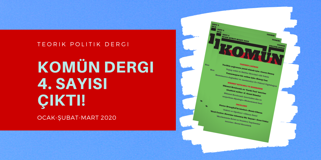 Komün Dergi emekçileri olarak ‘Tarihin Çağrısı’, ‘Hikmet Kıvılcımlı ve Marksizm’ ile ‘İnceleme’ başlıklı dosya konularından oluşan bir sayı hazırladık.