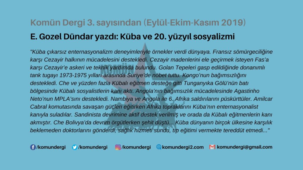 Son sözü 2016 yılının Kasım ayında kaybettiğimiz, partisinin 7. Kongresinde 89 yaşındayken konuşan Küba Devrim Lideri Fidel Castro’ya bırakıyoruz: