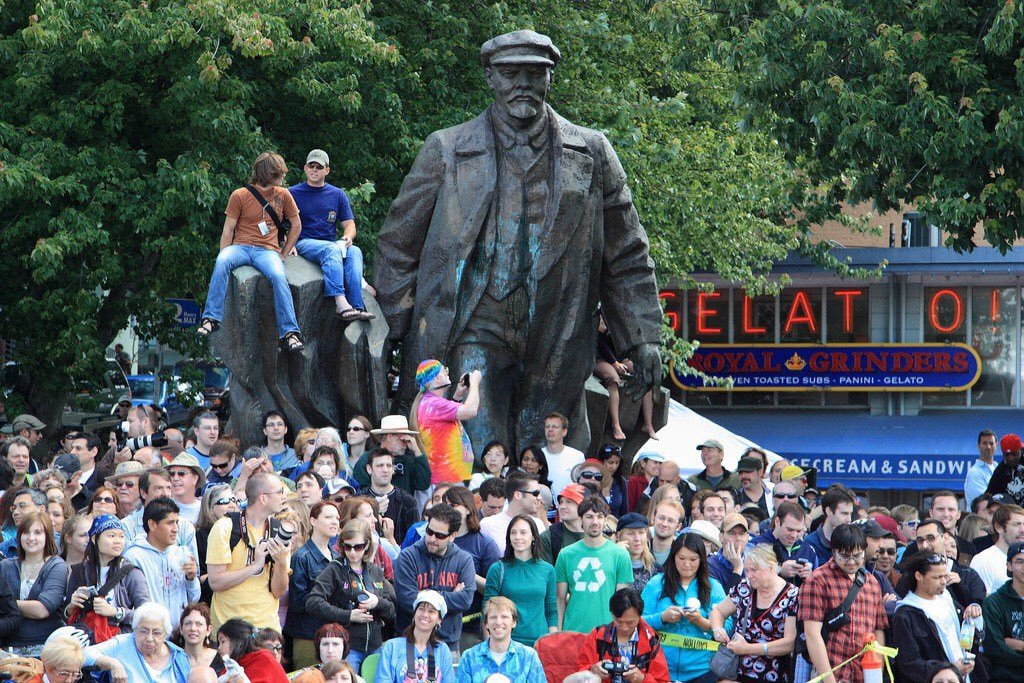 Yukarıdaki fotoğrafta Seattle eylemcilerinin yanında poz verdiği Lenin heykeli, Bulgar heykeltraş Emil Venkov tarafından Çekoslovakya Komünist Partisi için yapılmış ve 1993’te ABD’ye getirilmişti. Heykel, vakti zamanında sosyalizm döneminden kalma bir eserin para edebileceği düşüncesiyle ABD’ye taşınmıştı. Heyhat, Lenin heykeli şimdilerde yanında eylemcileri ağırlarken, şehirdeki diğer heykeller denizin dibini boyluyor.