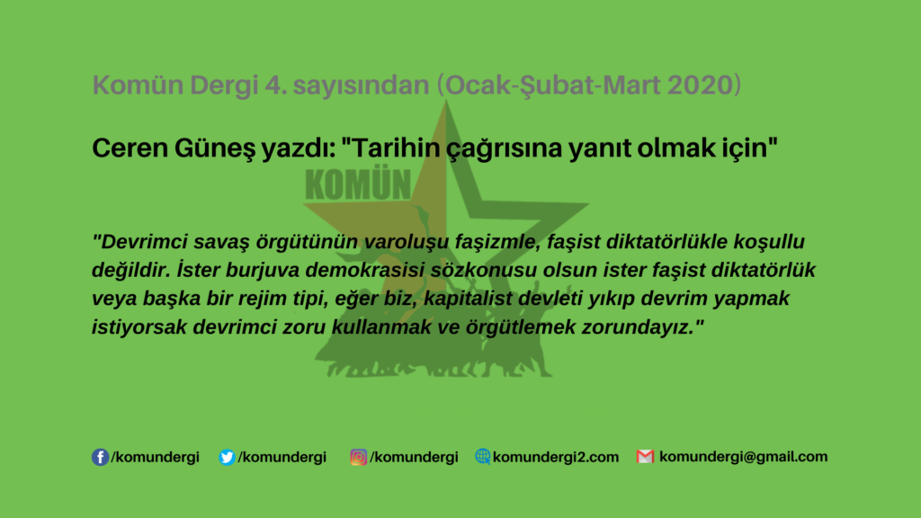Türkiye’nin nesnel koşullarına dair, parti yazınımızda yaptığımız değerlendirmelerin tümüne bakacak olursak (son olarak “Gerilla özgürlük gücüdür” metni de dahil) dünya deneyimleriyle uyumlu bir durumun olmadığını görmekle birlikte tartışmaları şablonculuk üzerinden yapamayacağımızı söyleyebiliriz. Zira kalıplar ve şablonculuk Komünarlar olarak kendimizi inşa sürecine başlarken ilk reddettiğimiz şeylerden biridir. Bu anlamda ordulu parti anlayışında kendi ülke koşullarımıza uygun farklı bir hat örmeye çalıştığımızı da iddia edebiliriz. Bu durumda yukarıda da ifade ettik nesnel koşullarımızın uygun olduğunu varsaysak bile bu bizi kurtarmıyor. O zaman, savaş gücümüzün nitelik ve nicelik yönünden ordu tanımlamasını karşılayıp karşılamadığını, burada devrimin esas gücü olan silahlanmış kitlelerin bu orduyla ilişkisini nasıl tariflediğimizi tartışmayı da bir ihtiyaç olarak görüyoruz. (…)
